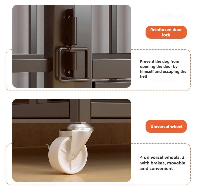 LOCKABLE &MOBILITY: The four quality wheels are for easy transfer from inside to outside. Two wheels can be locked to prevent accidental movement and keep your dog crate securely in place.